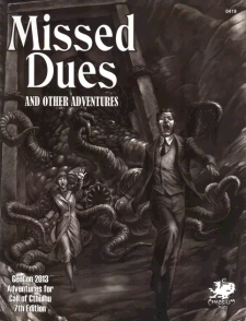 Scenario Missed DuesSoftback Missed Dues and Other Adventures2013 ChaosiumCall of Cthulhu (Classic)Arkham; 1922; Azathoth